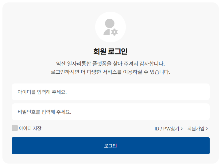 익산 일자리통합 플랫폼 일부 서비스 이용시 로그인이 필요합니다.